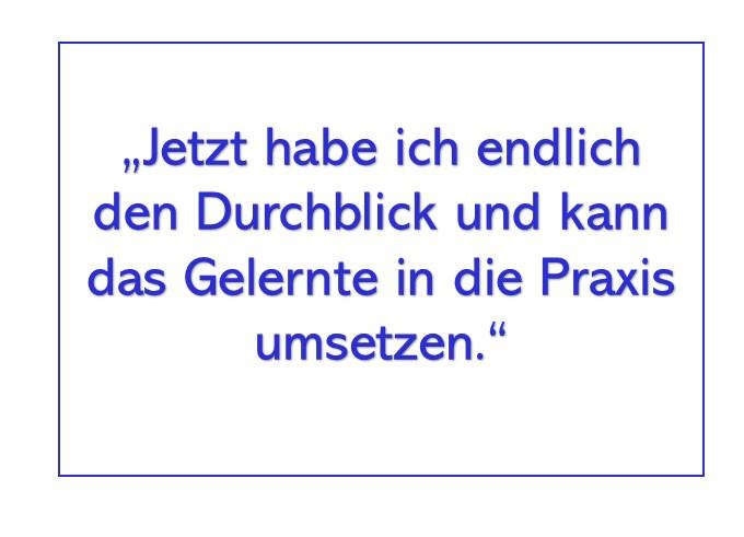 Praxisorientiert – teilnehmerorientiert – umsetzbar – nachhaltig