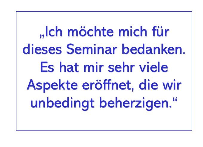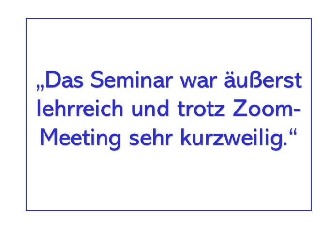 Die Teilnehmer unserer Schulungen bewerten die Seminare und Referenten mit Bestnoten. Die Durchschnittsnote in 2023 bei der Bewertung der Seminarinhalte war die Note 1,25; die Kompetenz der Referenten wurde mit 1,1 bewertet ( auf einer Skala von 1 – sehr gut – bis 5 – enttäuschend).